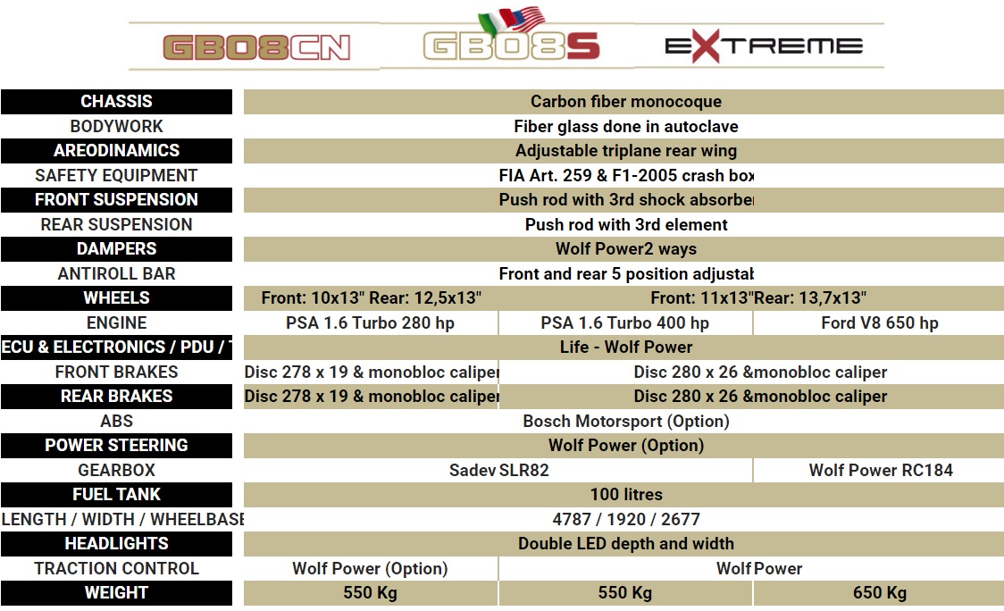Wolf GB08 Tornado vann 2017 Italian Sport Prototypes Championship under sin debutsäsong, såväl som viktiga Endurance-tävlingar som 3h Imola, 3h Mugello och 3h Misano, vilket resulterade snabbare än LMP3-klassens bil, 2019 Wolf GB08 Tornado har vunnit 3 Endurance Championships, Ultimate Cup (Frankrike), Middle East Series (Förenade Arabemiraten) och 2 Hours Endurance Champions Cup (Italien), samt många tävlingar i Australien och USA.